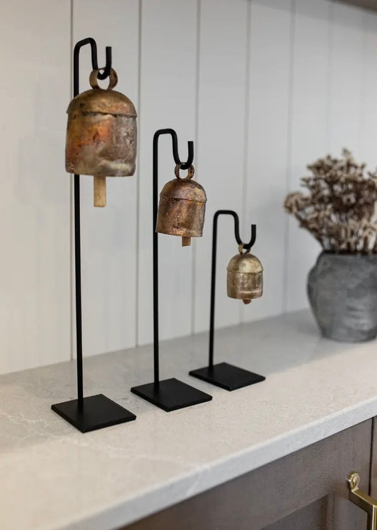 NOAH BELLS WITH IRON STANDS S/3