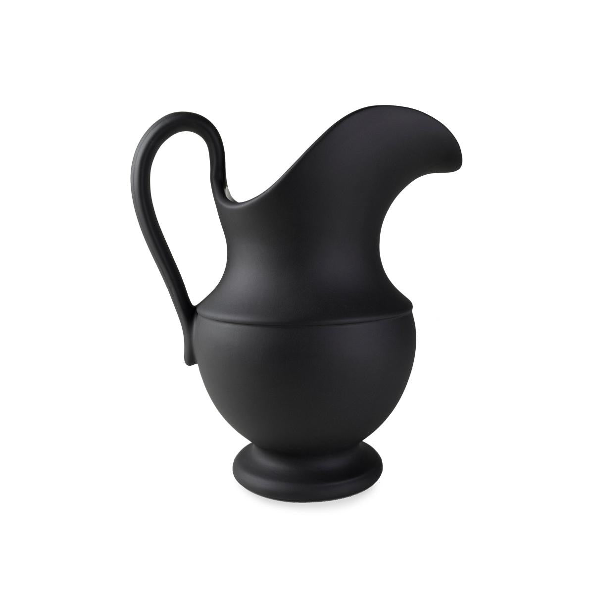 This statement pitcher is hand-carved and slip cast with refined silhouette and lasting utility. Choose black (matte/gloss) or flour (glossy). Serve with intention or let it stand as decor.