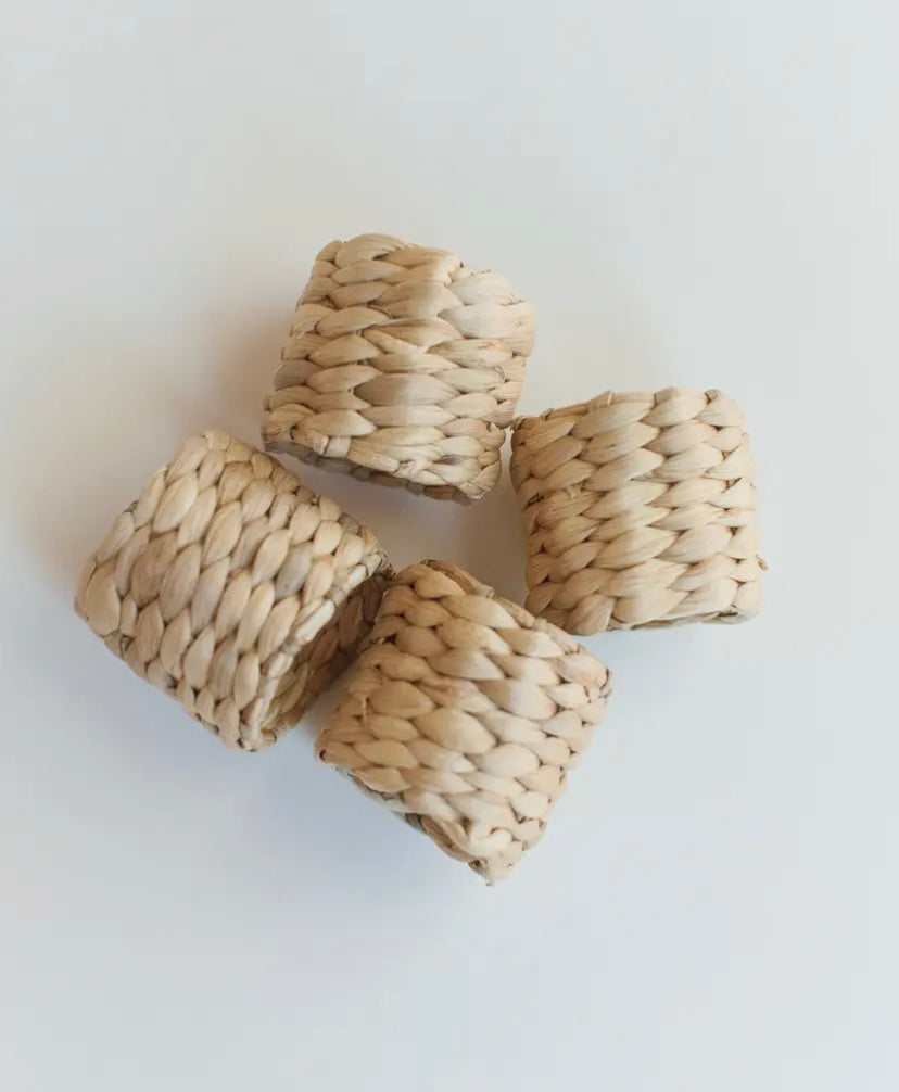 Handwoven from natural water hyacinth, this napkin ring adds soft texture and a grounded note to your place settings. Sold individually and made by skilled artisans.